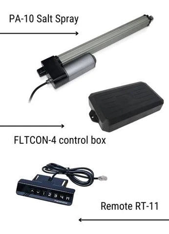 These customized PA-10 actuators were the best fit to meet the requirements for a Cube Series Camper primarily because they are able to travel at the same speed synchronously, offer salt spray protection and are also waterproof with an ingress protection rating of IP68M while in motion, as well as IP69K when static. Each custom PA-10 actuator also has 450 lbs of force rating to easily handle the loads experienced from the side walls and camper roof while being able to operate in temperatures ranging from -20°C to 70°C. The RT-11 remote and FLTCON-4 control box required protection against the elements and was installed from the inside while receiving 110 VAC input power.